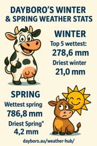 - Climate forecasts are specific to Dayboro’s unique environment.